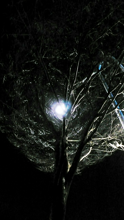 가로등 불빛에 제 살을 그대로 드러낸 겨울나무가 너무 멋져요...